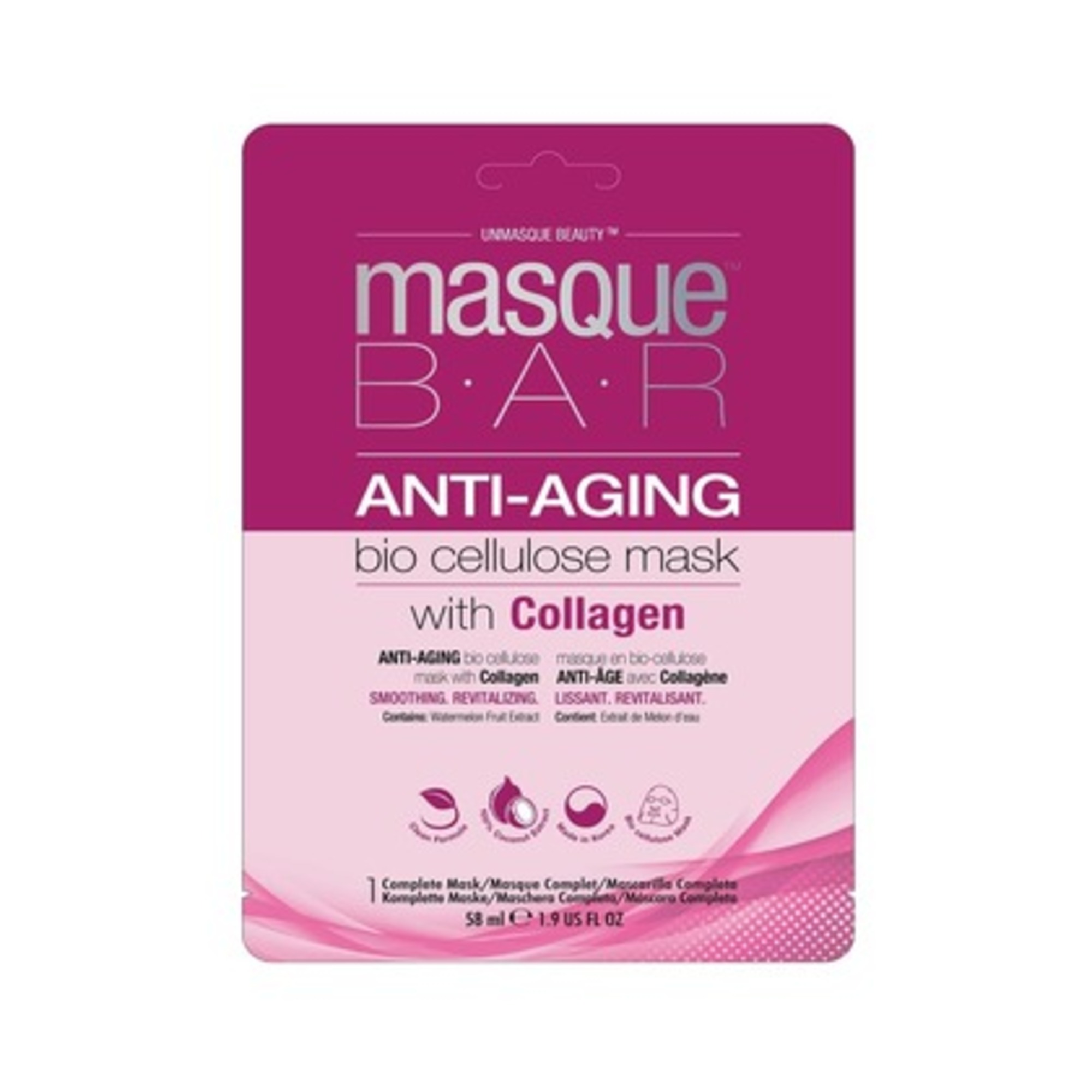 - Inovativní biocelulózová maska proti stárnutí s extraktem z grapefruitových jadérek a melounu a kolagenem rozjasňuje a zpevňuje pleť, zlepšuje vzhled jemných rýh,vrásek a váčků pod očima