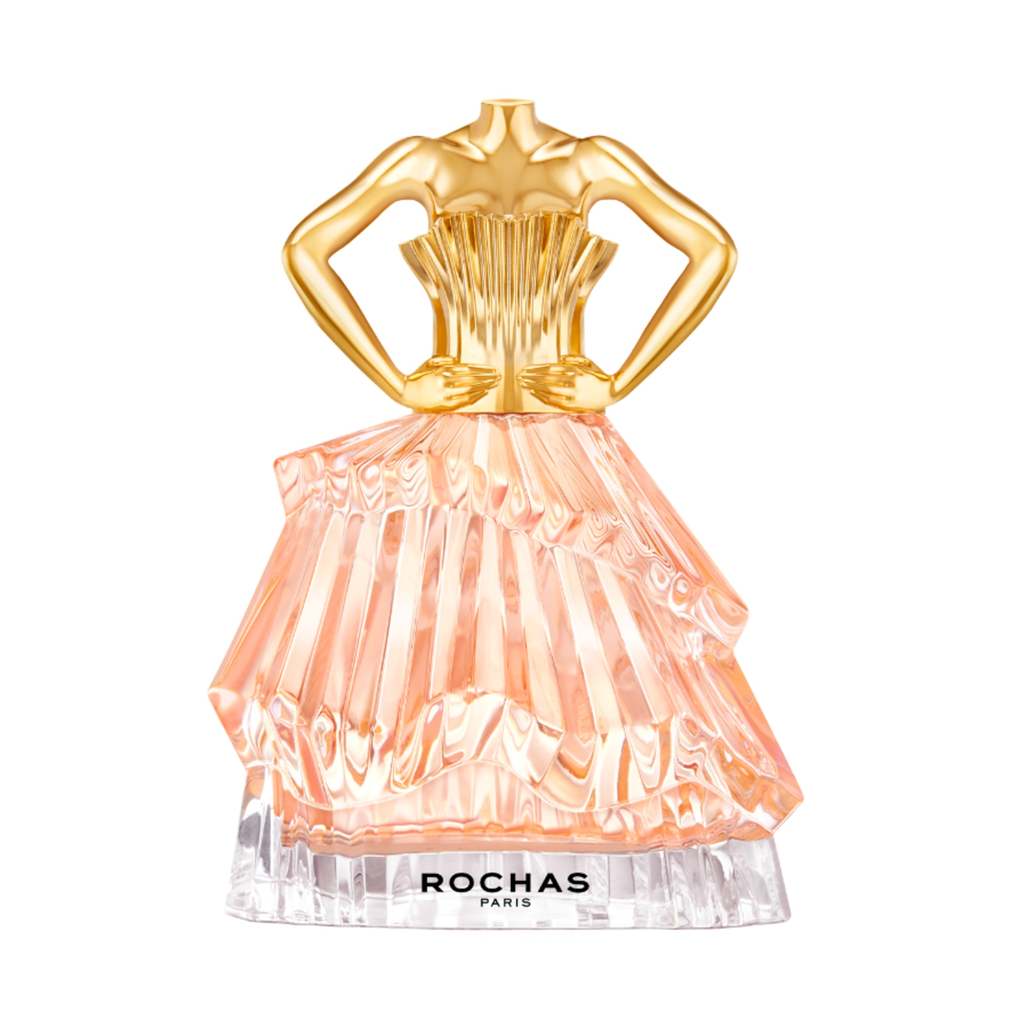 Flakon Rochas Audace je stejně jedinečný jako vůně samotná – jako trofej ženskosti. Připomíná ženskou siluetu zahalenou do luxusních haute couture šatů. Zlatý lesklý korzet tvoří elegantní uzávěr, zatímco fasetované sklo odráží světlo v každém úhlu.