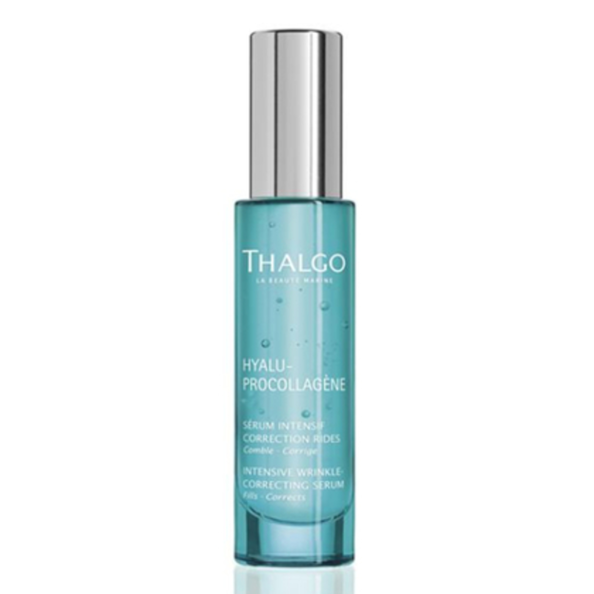 Intenzivní nápravné sérum na vrásky Thalgo Hyalu-Procollagene má trojitou účinnost proti vráskám. Kombinace tří kyselin hyaluronových a mořského pro-kolagenu pleť okamžitě vypíná, viditelně vyhlazuje vrásky a postupně vyplňuje i hluboké vrásky zevnitř. Organický extrakt semen vojtěšky podporuje buněčnou obnovu a stimuluje syntézu kyseliny hyaluronové a kolagenu I. Sérum má dvakrát větší koncentraci aktivních látek oproti krémům. Jeho lehká fluidní gelová textura snadno proniká do pleti pro dosažení maximální účinnosti.