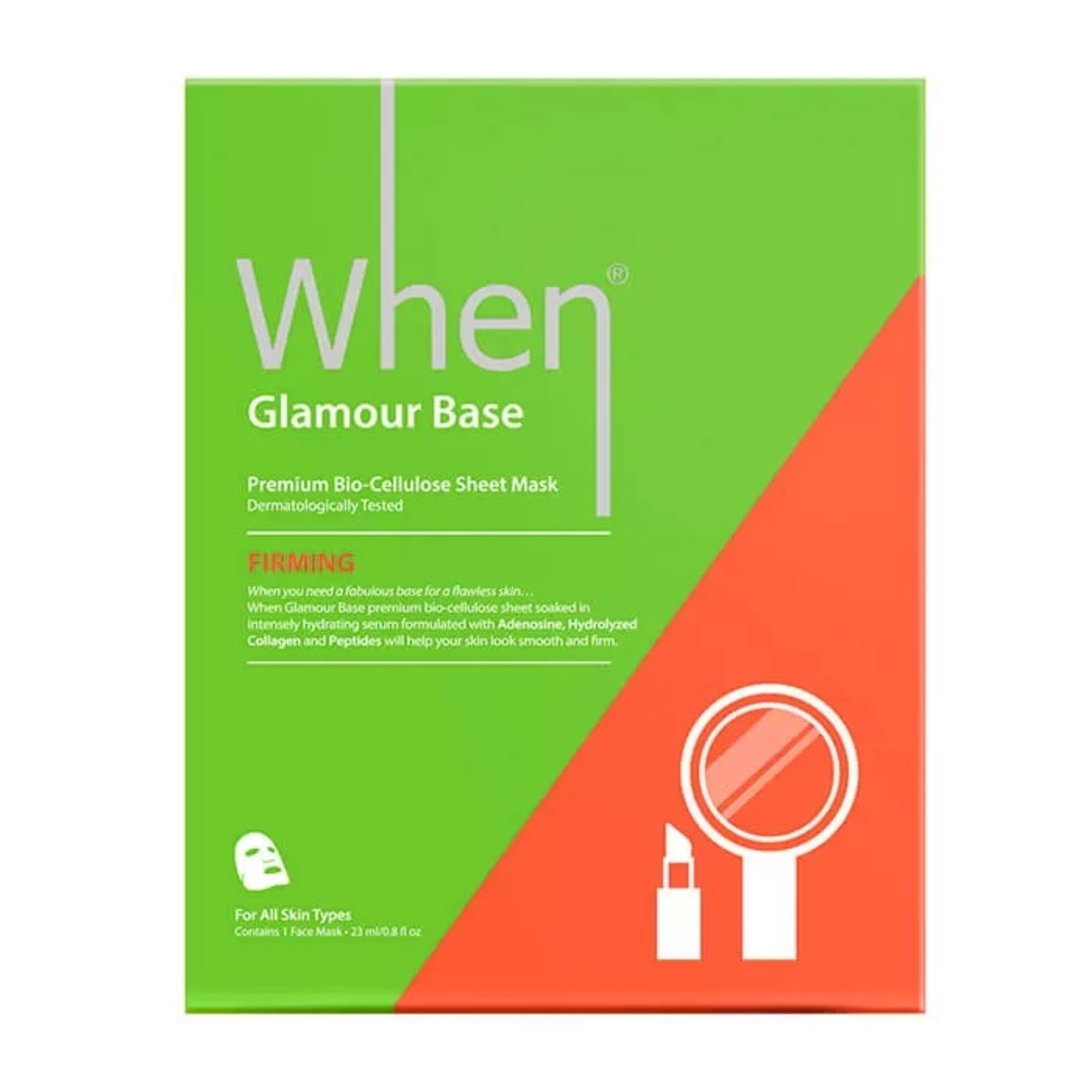 Maska Glamour Base je napuštěna biokompozitním sérem s adenosinem, který pomáhá vyhlazovat jemné vrásky a zlepšuje pružnost pleti, peptidy, které pomáhají zvýšit syntézu kolagenu, a hydrolyzovaným kolagenem, který pomáhá pleti udržet vlhkost a vypnout ji. Obsahuje také hyaluronát sodný, který pomáhá chránit a hydratovat pleť, a výtažky z ženšenu pro zdravější vzhled pleti.